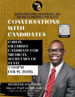 Alpha Phi Alpha Fraternity, Inc. – Gamma Lambda Chapter’s Voteless People Is A Hopeless People is offering candidates the opportunity to participate in Conversations with...